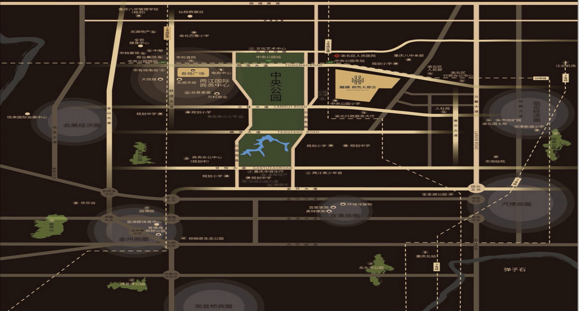 重庆中央公园,鹿山公园、沐仙湖湿地公园、文化艺术中心、重庆市音乐厅、两江青少年宫