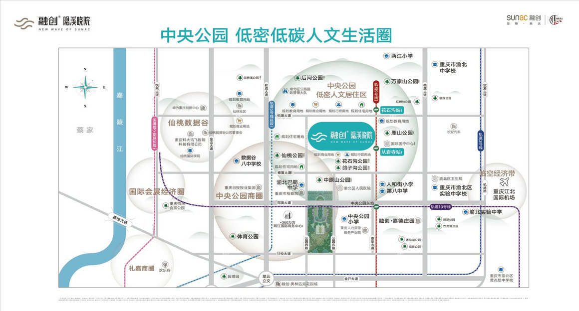 直达在建中两江国际商务中心;优享渝北区人民医院(目前已经投入使用)、重庆国际医疗中心(在建中)等优质医疗护航。