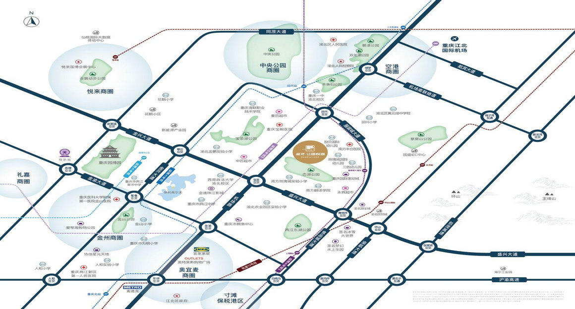 蓝光公园悦湖位于重庆渝北回兴,地理位置优越,环境舒适。周边主干道及轻轨路网完善,四条轻轨线(3号线及10号线已开通,9号线在修建中、15号线规划中)、10余条公交线路、机场路、渝航大道等多条道路畅通全城。