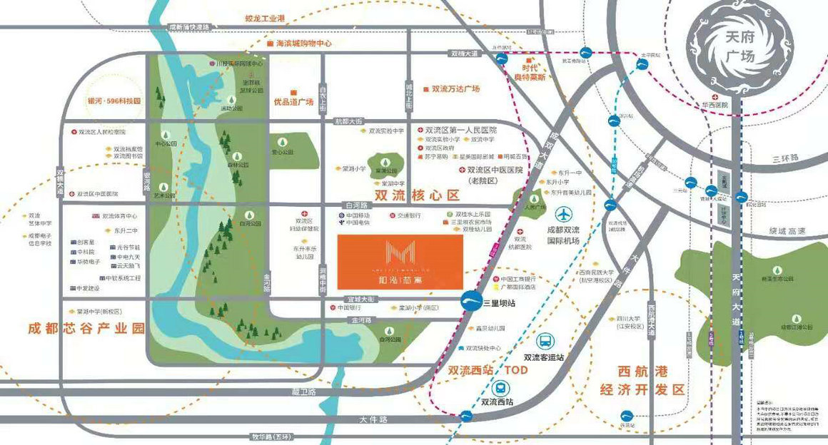 休闲健身:白河公园,双流区艺术公园,凤翔湖市政森林公园,双流区中心公园,双流运动公园,轨道交通描述:距离3号线三里坝站几百米,乘坐1站可到双流西站或换乘10号线双流西站。