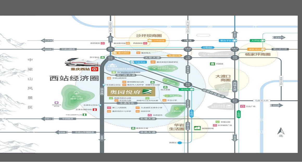 九龙奥园城市天地雄踞西站经济圈腹地,占据城市发展新风口,享“一站一环三轨四路”立体交通布局,便捷道路四通八达,无缝接驳沙坪坝、杨家坪、大渡口区。