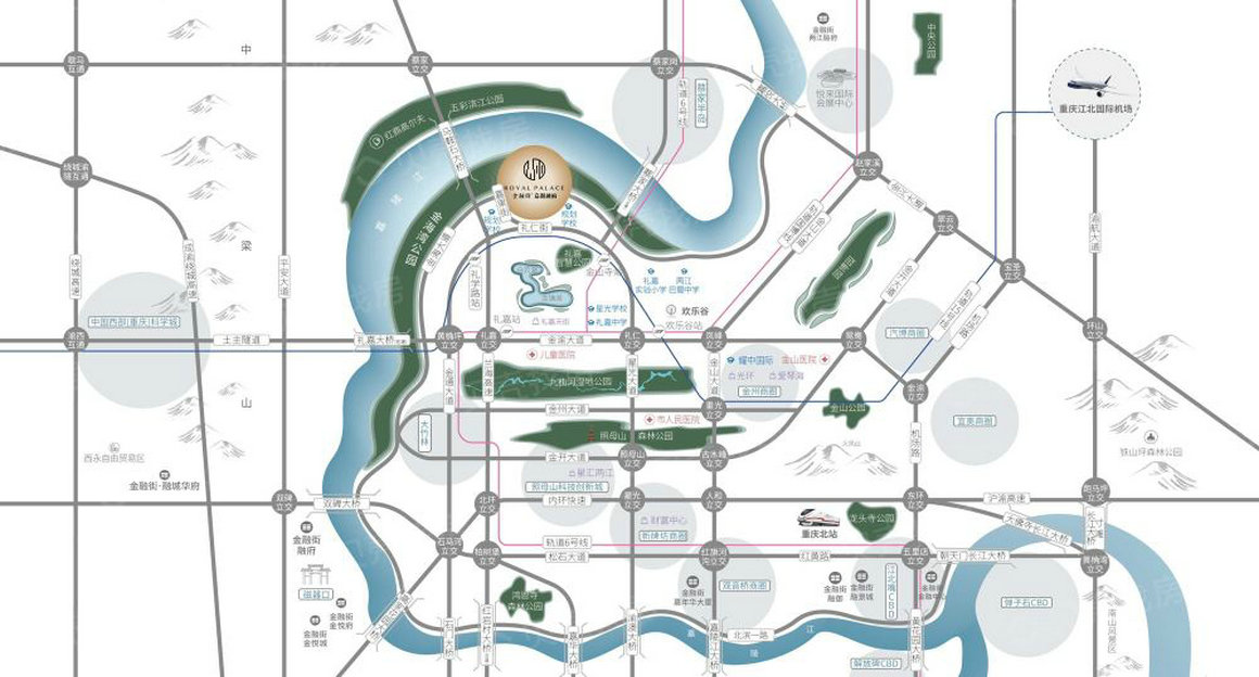 金融街·嘉粼融府项目,傲踞礼嘉半岛千万级滨江豪宅带中心位置,坐享嘉陵江黄金湾畔,咫尺金海湾滨江公园,山环水抱,绿荫藏深。