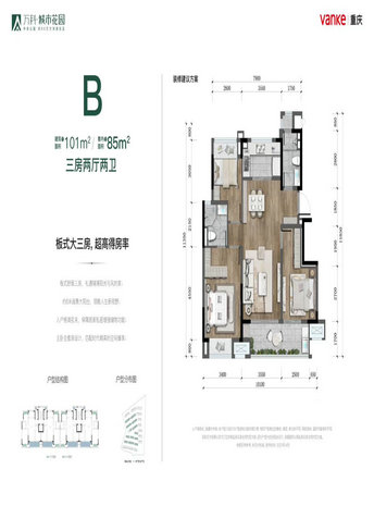 万科城市花园项目位于中央公园,以约50万方大体量,创著洋房低密宜居社区。社区限高限容,限高24米、容积率1.44。建面约85、101、131㎡精装6-8层真洋房,得房率超82%,更大的空间拓展性。