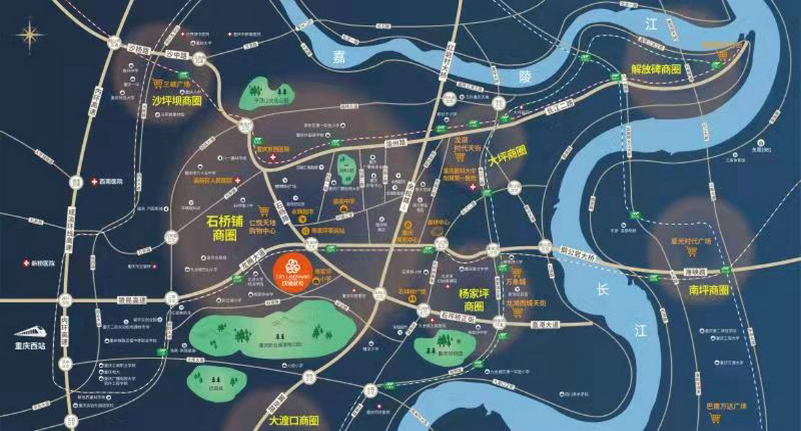 小区临近轨道交通环线陈家坪站,出行便利;商业完善,生活氛围浓厚;楼盘周边有重庆华肤医院,就医便捷;社区特色为高绿化率、公园地产、设施齐全、产业园区、购物中心、人文设施、医疗便利.