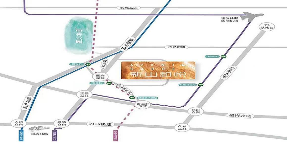 项目位于渝北母城—回兴板块。回兴属于国家级临空经济区重要部分,同时作为渝北发源地,区域配套醇熟,交通便捷,商业繁华,医疗齐备,教育丰富,璀璨生活触手可及。
