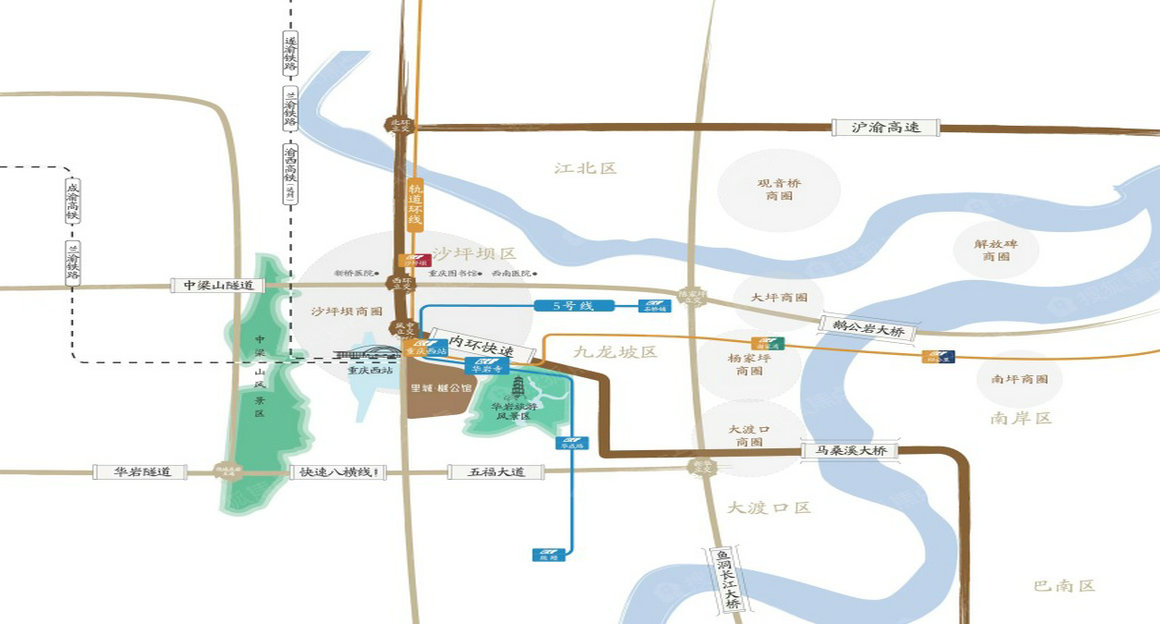 项目位于重庆西站旁,交通配套是我们一大亮点,本项目拥有“一站一环四轨道”的立体交通布局,四通八达出行便捷,可在重庆各城区间随意切换。成渝双城经济圈的门户位置,独享高铁红利,成渝双城经济圈荣升为国家战略,打造中国经济第四增长极。