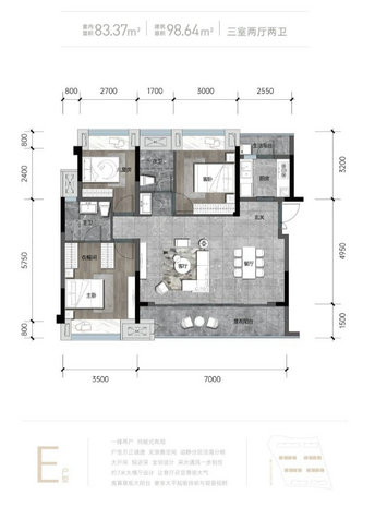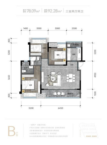 面积:建面面积约92平-98平