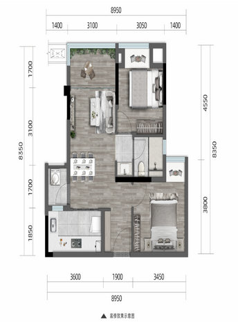 面积:建面面积49平-71平