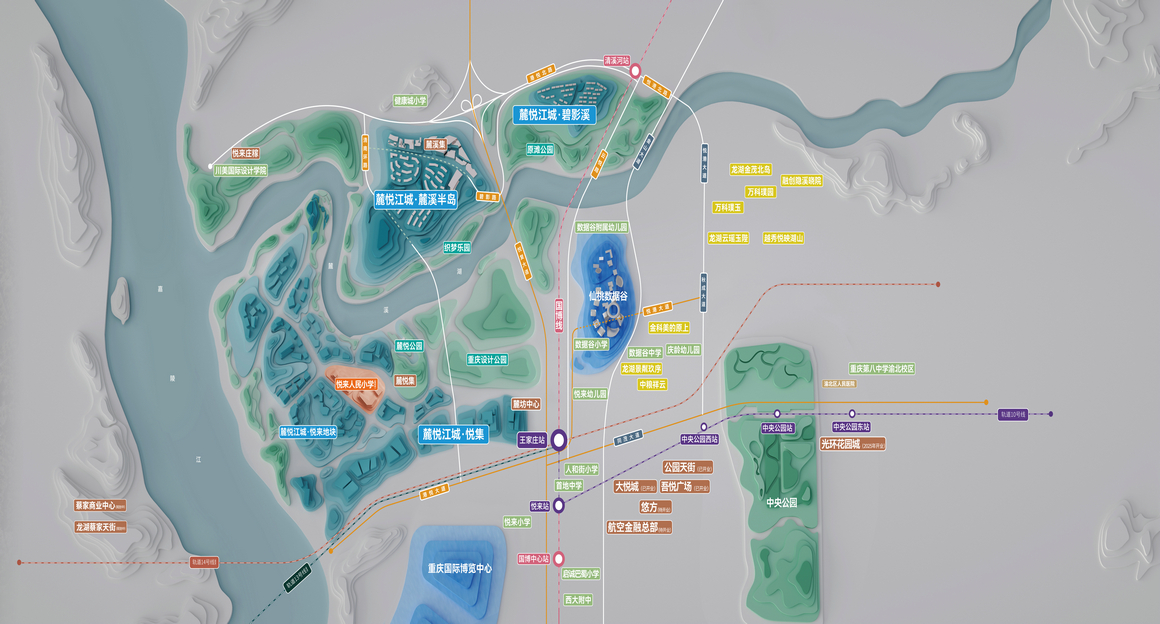 区域内拥有配置完善的交通构建,以悦复大道、悦港大道、悦港北路三条城市干道为主要交通枢纽,轨道交通6号线、10号线,贯穿两江新区核心交通动脉,可与1号线/3号线/5号线(建设中)/10号线(建设中)/环线无缝换乘